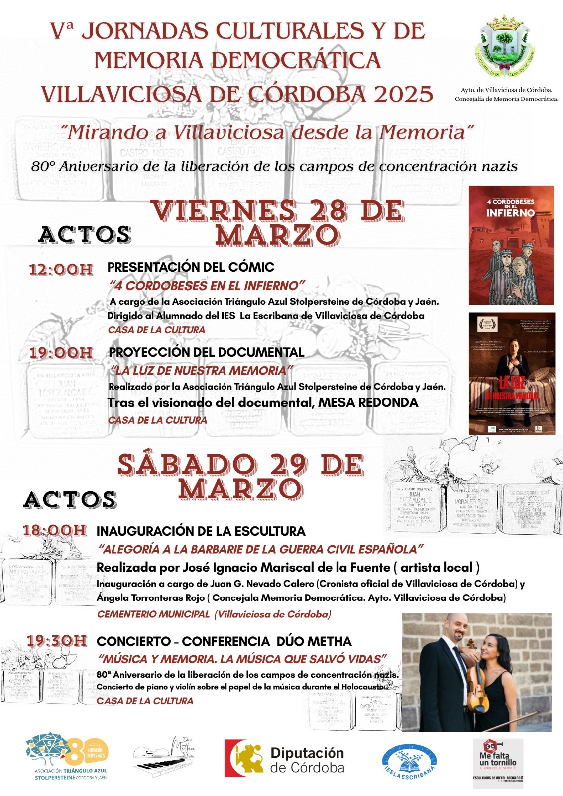 Compartimos su reivindicación de memoria democrática y de compromiso con la verdad. Se harán varios actos en toda la provincia de Córdoba entre el 2 y el 6 de mayo, en aquellos municipios con Stolpersteine (Piedra de la Memoria) organizados por esta asociación junto a ayuntamientos, familiares y socios.
