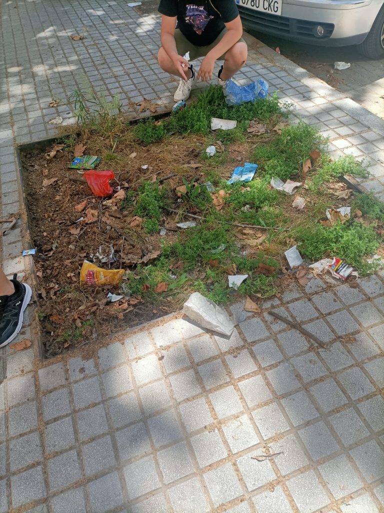 La actividad fue realizada por el alumnado de 6º curso, buscando como finalidad la toma de conciencia sobre el estado actual del barrio en cuanto a ausencia de zona verde y falta de numerosos árboles que han ido desapareciendo a lo largo de los años, sin ser sustituidos ni repoblada la zona.