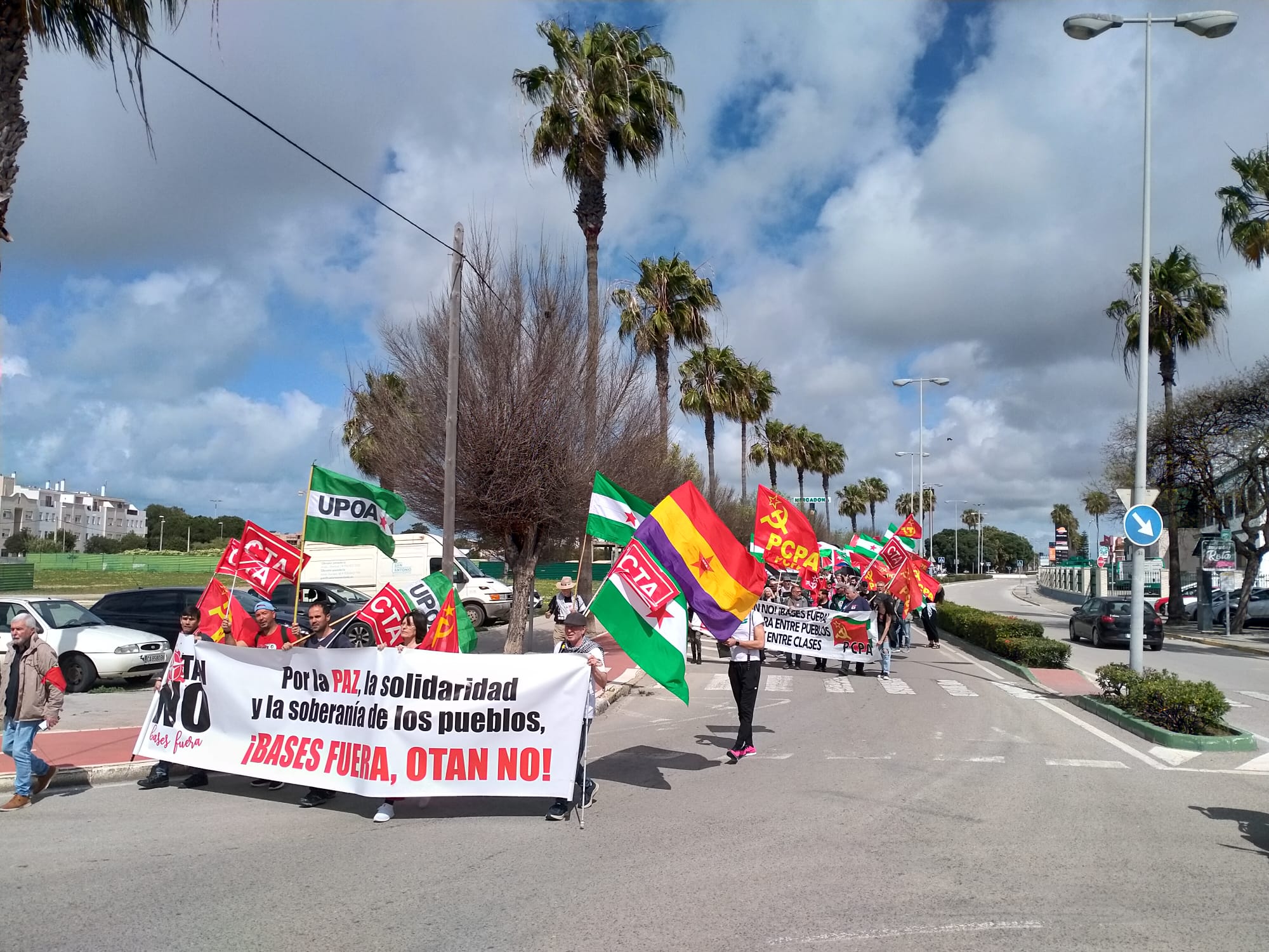 C.T.A. (Coordinadora de Trabajadores de Andalucía) está en contra de la presencia de las bases militares en Rota y Morón, ambas bajo control de EE. UU, y que desde estas instalaciones se realicen operaciones militares en el Mediterráneo “siempre al servicio de los intereses geopolíticos de EE. UU y sus aliados en la OTAN”, explican desde el sindicato. Por ello se unieron a la marcha propuesta por la plataforma OTAN no, bases fuera.