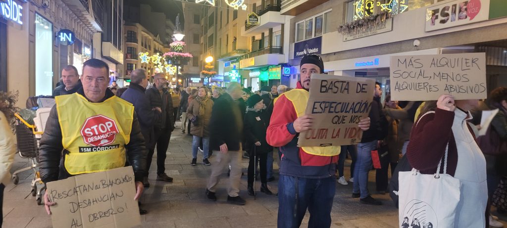 Cerca de 1000 personas se manifestaron ayer por las calles del centro de Córdoba en una manifestación convocada por la plataforma ciudadana 15M Stop Desahucios en protesta contra el sistema mercantilista que impide poder acceder a una vivienda de una manera digna.