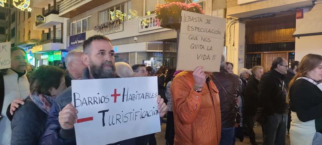 En torno a las nueve de la noche, el recorrido llegaba a su fin con la lectura de un manifiesto frente al Ayuntamiento en Capitulares. El mensaje por parte de Stop Desahucios era claro, “mientras la vivienda se siga considerando un bien de mercado estaremos en la calle luchando” comentaba una de las portavoces de la Plataforma, Rocío López. En este sentido la Plataforma 15M Stop Desahucios no sólo quería poner el foco de atención en la realidad de la última década de los miles de desahucios que se están produciendo por ejecución hipotecaria, sino también en los que se están produciendo por alquiler que han llegado a duplicar a los primeros, señalaron además a los fondos buitres que están tensionando el mercado inmobiliario y provocando fenómenos como la turistificación.