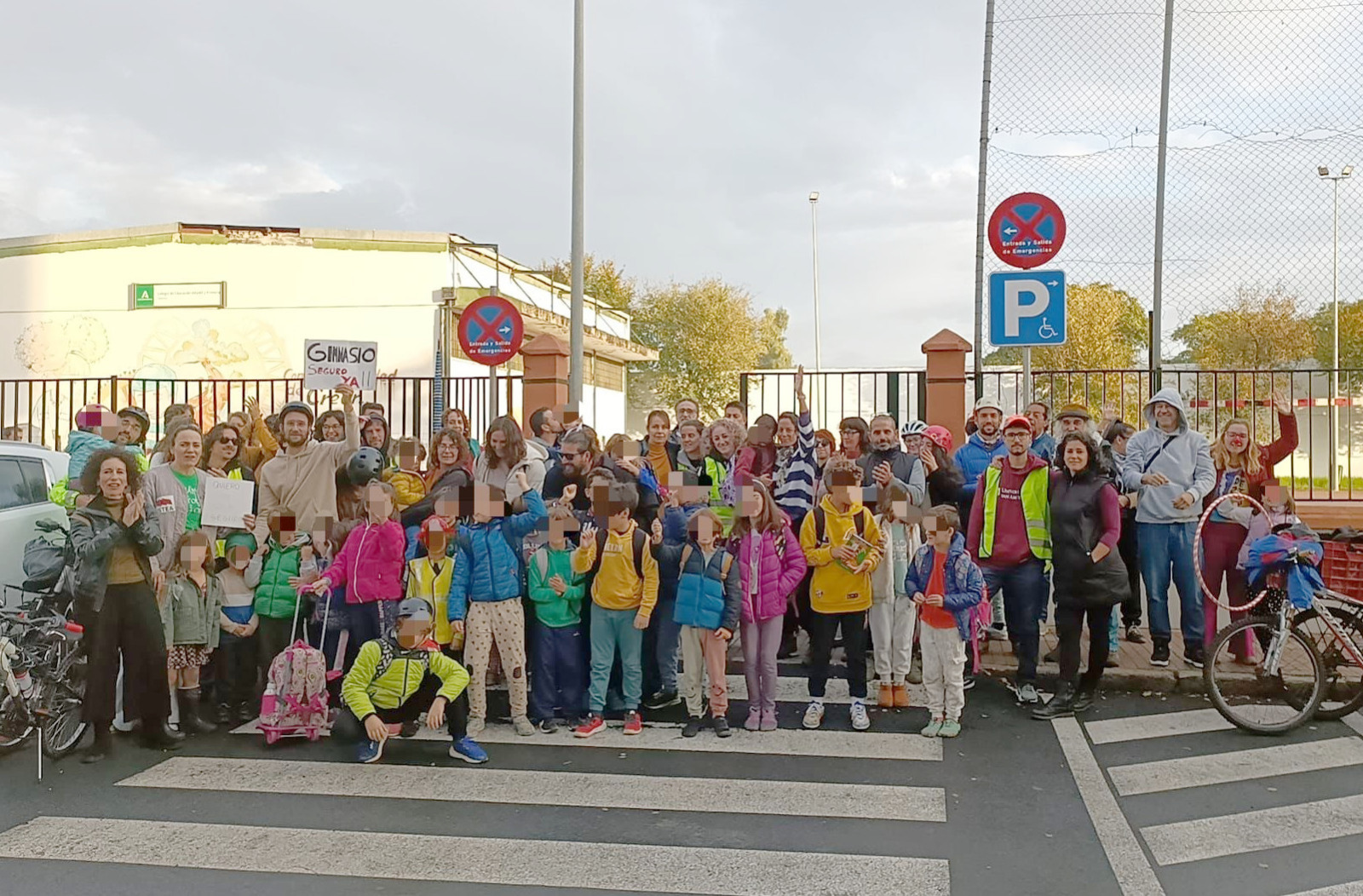 A la situación del gimnasio se le suma la de la falta de toldos, cuya instalación lleva tiempo prometida pero que aún no se ha hecho efectiva. “En mayo tuvimos que venir con sombrillas y paraguas al colegio porque no pusieron los toldos prometidos (aún no se han puesto…). Hoy nos hemos concentraremos en las puertas del colegio con chalecos, cascos y material deportivo para reivindicar un espacio seguro para nuestras hijas e hijos y denunciar el estado ruinoso del gimnasio”.