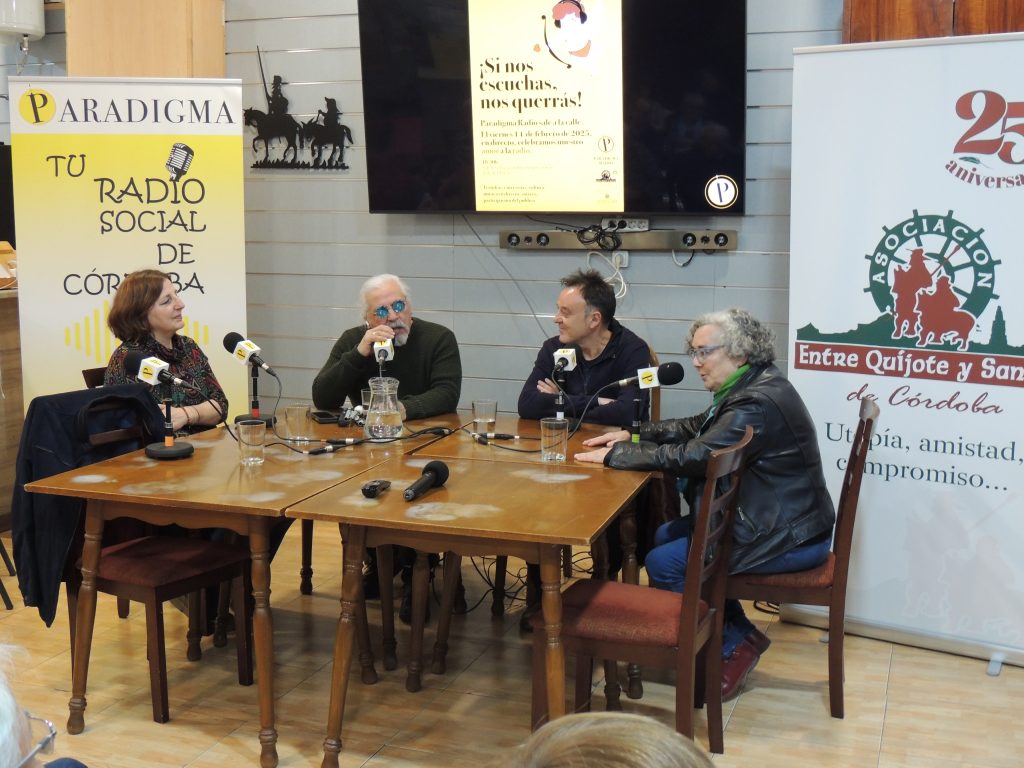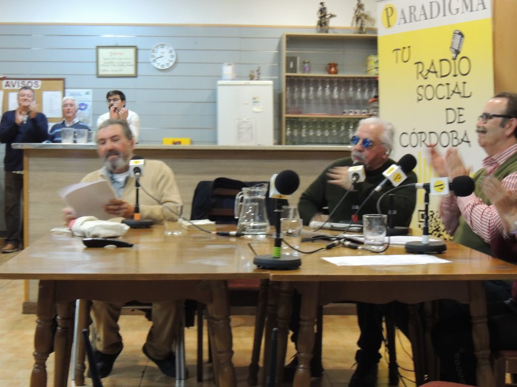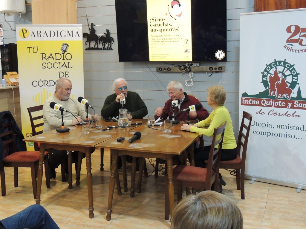 María José Montilla solicitó escuchar una canción de esas que, tristemente, siempre y cada vez más, están muy vigentes. Se trató de la “Milonga del Moro Judío”, del gran Jorge Drexler. Y tras oírla, tuvimos a más protagonistas de Paradigma Radio: Ana Baragaña y José Antonio Naz que hacen “Domingos Laicos”, de la Asociación Córdoba Laica; a Manolo Mora y Alicia Jurado, que hacen “Ciencia Radiante”; y a las presentadoras de “Derecho a Techo”, Emma Lancha, que estaba en la mesa, e Isabel Becerril que nos atendió desde Buenos Aires. Sabrosísima la charla que mantuvieron.
