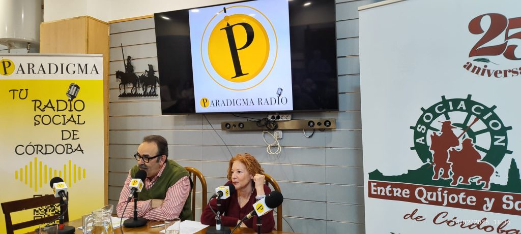 Tras “Te espera el mar” de María José Llergo, primera canción dedicada por Isabel Jiménez, se sentaron en la mesa tres miembros de la Asociación “Entre Quijote y Sancho”. Uno, su presidente, Pepe Alonso que habló de la vida del grupo, riquísima, y absolutamente encomiable. Y también Mariloli Portero y José Manuel Matencio, dos personas muy vinculadas, además de a su asociación, a Paradigma Radio.