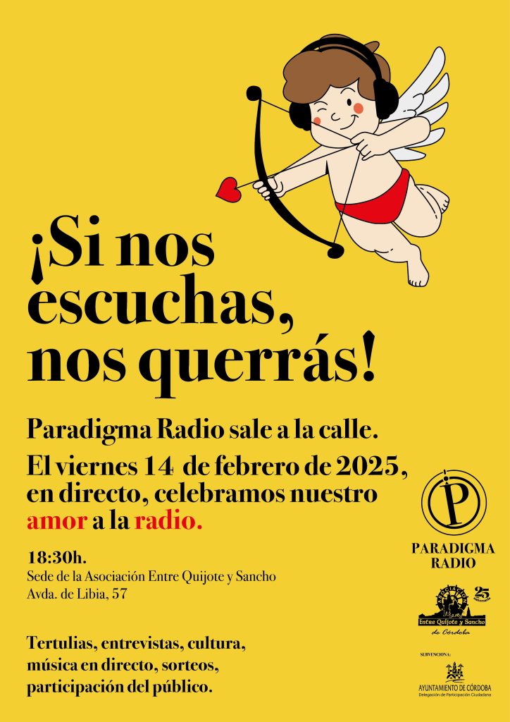 Os recordamos que la semana que viene no habrá ¡¿Qué tal?! el jueves, porque Paradigma Radio sale a la calle. Nos vamos, el viernes 14, a partir de las 18’30, nada más y nada menos que a una de las asociaciones más vivas de nuestra ciudad, la Asociación “Entre Quijote y Sancho”. Aquí os dejamos el cartel y, si puedes, ¡enróllate anunciándolo y renviándolo!